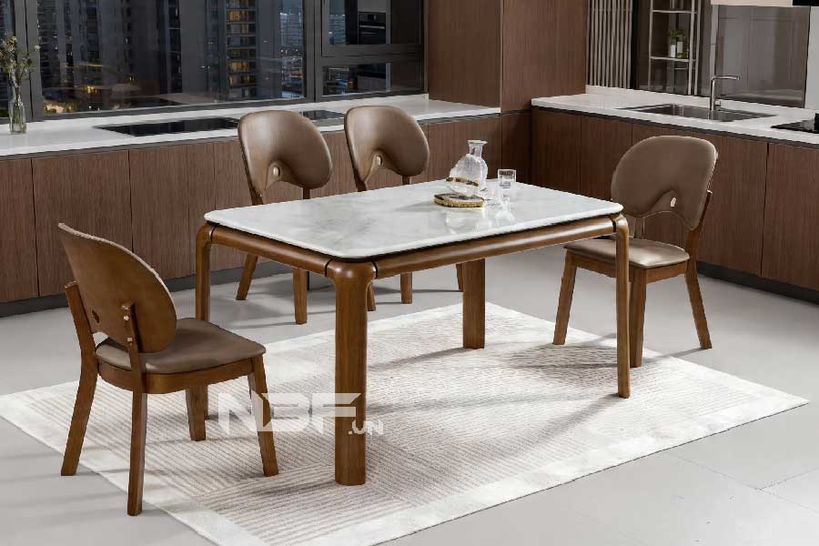 Bộ bàn ăn 4 ghế gố tự nhiên mặt đá hiện đại